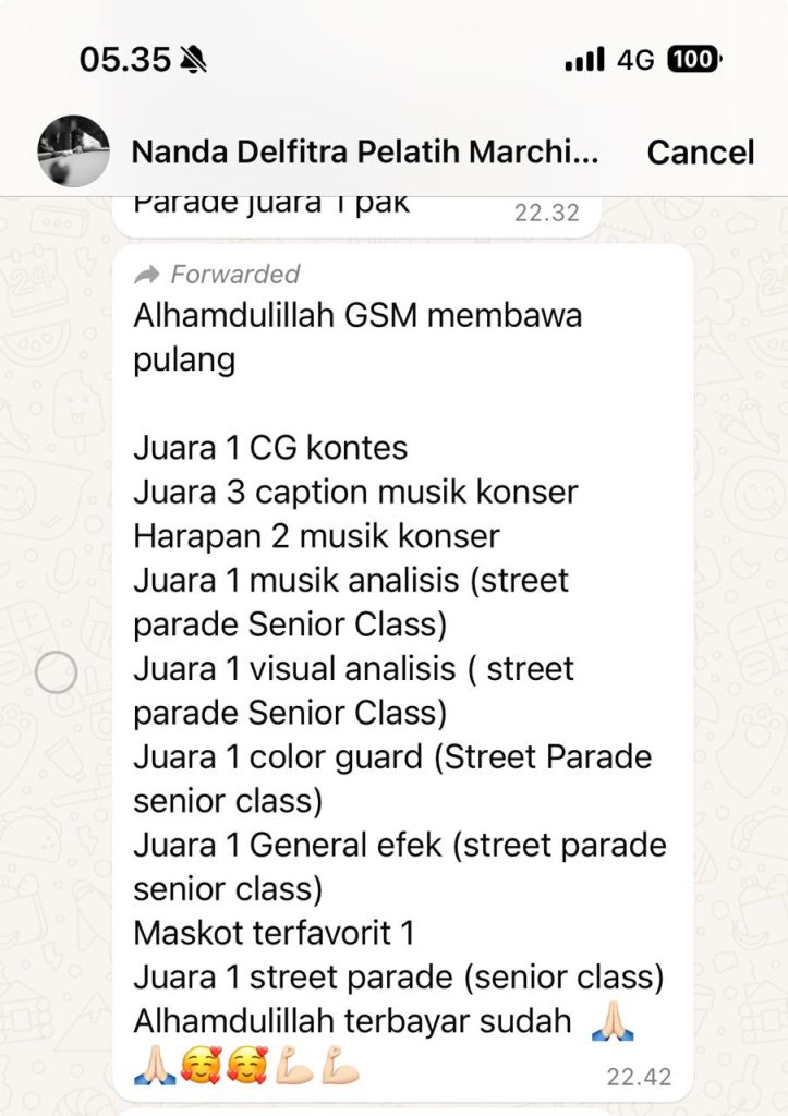 Selamat anak2 SMP 2 Payakumbuh diwakilkan Vatih Azwar kelas 8.8 berhasil memperoleh juara 1 street parade .juara 1 Music Analysis .Juara 1 General Effect dalam Event SOS (Sumatera On Stage) Kejuaraan Open Marching Band Nasional 2024